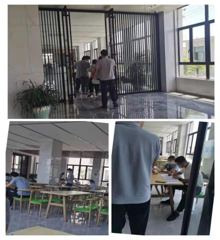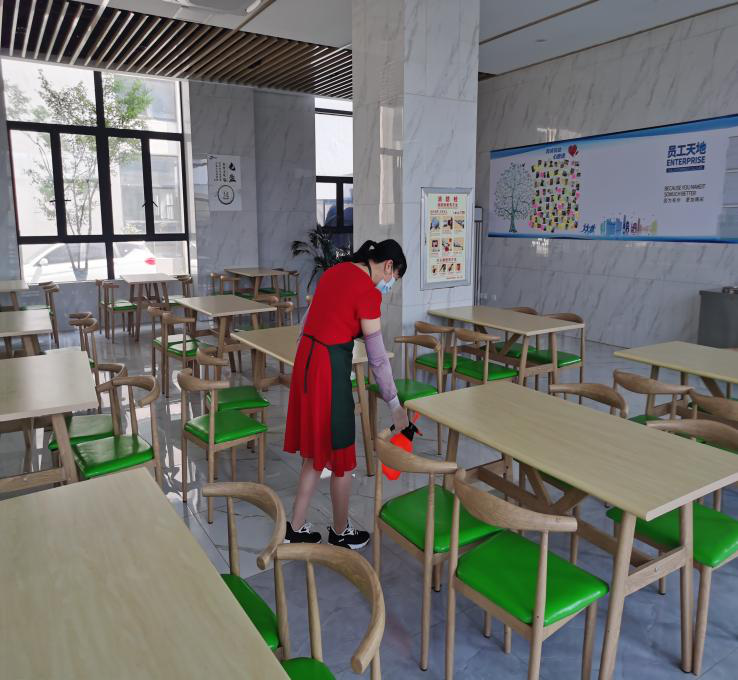 中午公司食堂就餐,安排餐前測(cè)溫,就餐期間一人一桌,不交流拉開吃飯的距離減少感染的機(jī)會(huì)。就餐結(jié)束,每位員工的餐盤自行帶回清洗消毒保管。